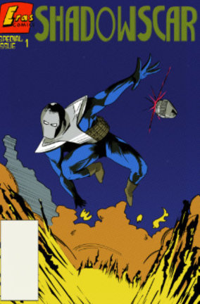 After a Midwest tour, Trent parted with the magician and returned to freelance pyrotechnic work, eventually settling down in the city run by the mob who killed their family. Adopting the persona Shadowscar, Trent waged war against the mob and corrupt police responsible. A story arc that made it to draft involved Shadowscar battling LAW (Lethal Authority of Warriors) a militarized gang made of cops and right-wing extremists who occupied the city under the guise of law and order, but were only there to ‘clean up’ the city for a ‘huge guy’ billionaire to buy up properties for cheap and ramp up his human trafficking enterprise.